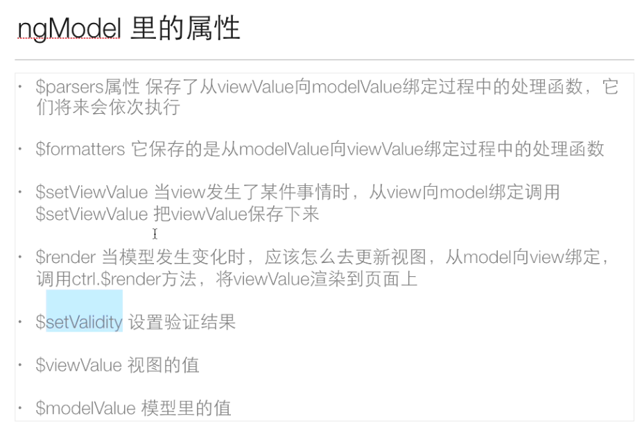 - 当需要对数据进行深层处理时,可以用ngModel模块->一般是指令,这个ngModel对应的就是指令匹配元素上的ng-model