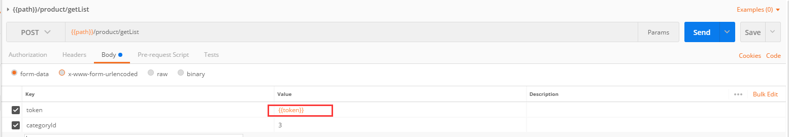 - pre-request script(请求发送之前会执行的脚本,js编写)